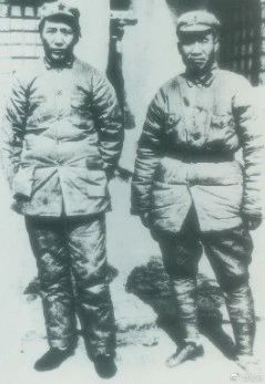 ▲1937年7月7日,盧溝橋事變爆發。8日,中共中央通電全國,號召結成民族統一戰線抵抗日本侵略者。圖為1936年冬毛澤東和朱德在陜北。